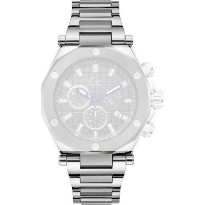 This GC watch strap is made of stainless steel and is attached to the watch by means of saddle screw. The band has a width of 24 mm and is closed by means of a butterfly clasp with push buttons. The strap has no straight mount which means that this strap is only suitable for the watches listed below.
