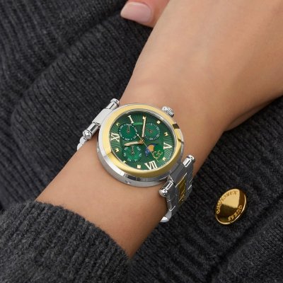 This GC watch has a case made of stainless steel with a diameter of 36.5 mm and is fitted with a stainless steel band. Inside the case lies a Ronda movement and the watch features a Sapphire crystal.