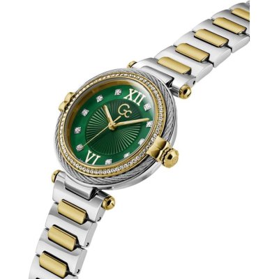 This GC watch has a case made of stainless steel with a diameter of 36.5 mm and is fitted with a stainless steel band.