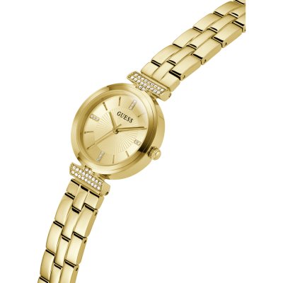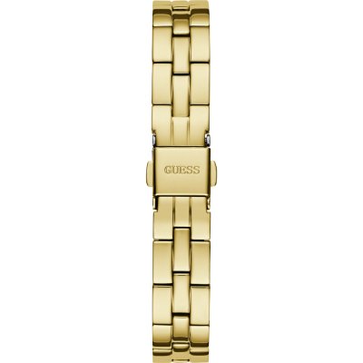 This Guess watch has a case made of stainless steel with a diameter of 28 mm and is fitted with a stainless steel band. Inside the case lies a Seiko movement and the watch features a Mineral crystal.