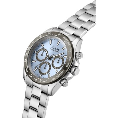 This Guess watch has a case made of stainless steel with a diameter of 42 mm and is fitted with a stainless steel band. Inside the case lies a Seiko Instruments Inc. movement and the watch features a Mineral crystal.