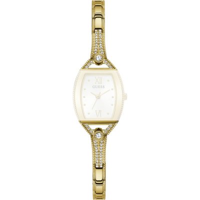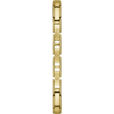 This Guess watch strap is made of stainless steel and is attached to the watch by means of steel pins. The band has a width of 7 mm and is closed by means of a jewelry clasp. The strap has no straight mount which means that this strap is only suitable for the watches listed below.
