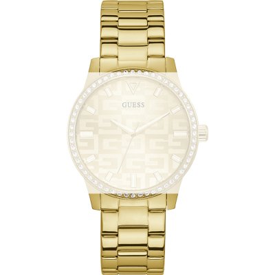 This Guess watch strap is made of metal and is attached to the watch by means of pushpins. The band has a width of 20 mm and is closed by means of a deployment clasp with push buttons. The strap has no straight mount which means that this strap is only suitable for the watches listed below.