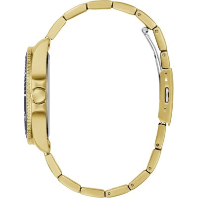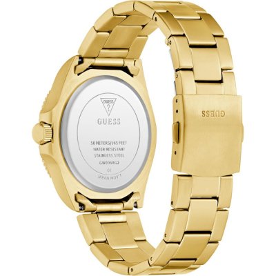 This Guess watch has a case made of stainless steel with a diameter of 41 mm and is fitted with a stainless steel band. Inside the case lies a Seiko movement and the watch features a Mineral crystal.