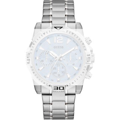 This Guess watch strap is made of stainless steel and is attached to the watch by means of pushpins. The band has a width of 24 mm and is closed by means of a deployment clasp with push buttons. The strap has no straight mount which means that this strap is only suitable for the watches listed below.