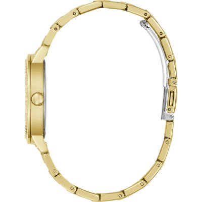This Guess watch has a case made of stainless steel with a diameter of 34 mm and is fitted with a stainless steel band.