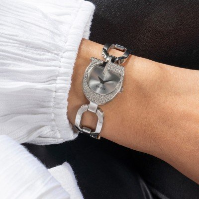 This Guess watch has a case made of stainless steel with a diameter of 22 mm and is fitted with a stainless steel band. Inside the case lies a Seiko Instruments Inc. movement and the watch features a Mineral crystal.