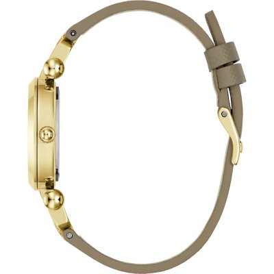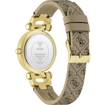 This Guess watch has a case made of stainless steel with a diameter of 30 mm and is fitted with a leather band. Inside the case lies a Seiko movement and the watch features a Mineral crystal.