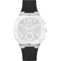 This Guess watch strap is made of silicone and is attached to the watch by means of steel pins. The band has a width of 25 mm and is closed by means of a buckle. The strap has no straight mount which means that this strap is only suitable for the watches listed below.