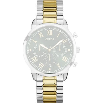 This Guess watch strap is made of metal and is attached to the watch by means of pushpins. The band has a width of 22 mm and is closed by means of a deployment clasp with safety. The strap has no straight mount which means that this strap is only suitable for the watches listed below.