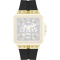 This Guess watch strap is made of silicone/Rubber and is attached to the watch by means of pushpins. The band has a width of 28 mm and is closed by means of a buckle. The strap has no straight mount which means that this strap is only suitable for the watches listed below.