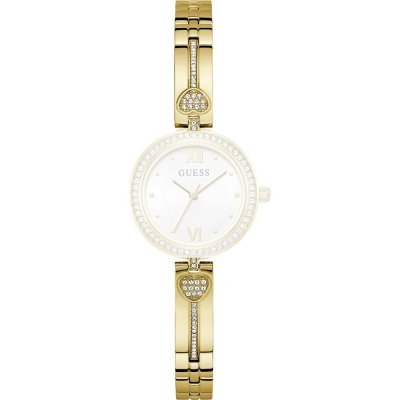 This Guess watch strap is made of metal and is attached to the watch by means of steel pins. The band has a width of 8 mm and is closed by means of a deployment clasp with push buttons. The strap has no straight mount which means that this strap is only suitable for the watches listed below.