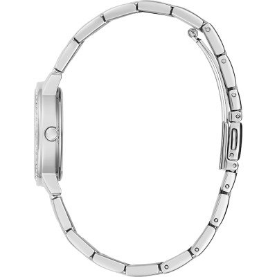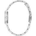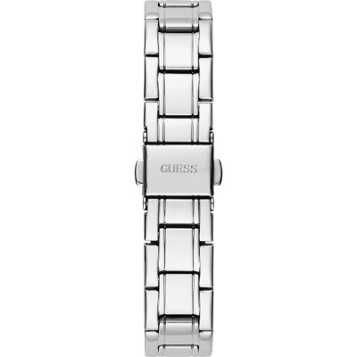 This Guess watch has a case made of stainless steel with a diameter of 28 mm and is fitted with a metal band. Inside the case lies a movement and the watch features a Mineral crystal.