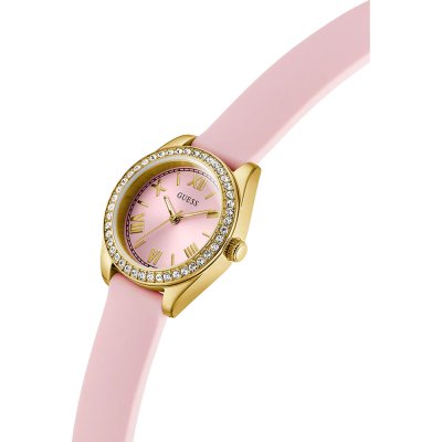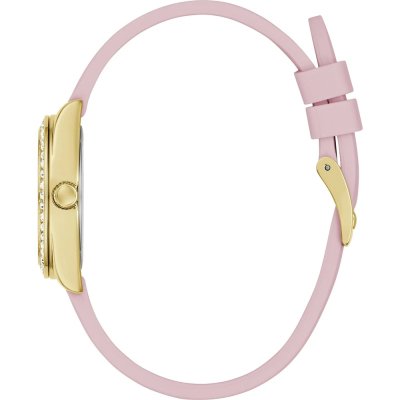 This Guess watch has a case made of stainless steel with a diameter of 30 mm and is fitted with a rubber band. Inside the case lies a Seiko movement and the watch features a Mineral crystal.