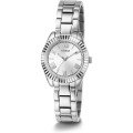 This Guess watch has a case made of stainless steel with a diameter of 30 mm and is fitted with a stainless steel band.