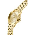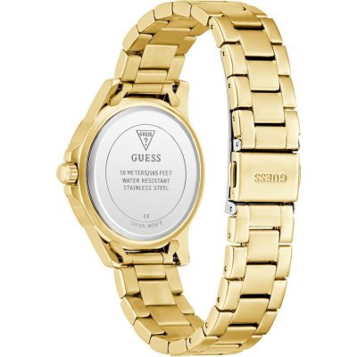 This Guess watch has a case made of stainless steel with a diameter of 35 mm and is fitted with a stainless steel band. Inside the case lies a Seiko movement and the watch features a Mineral crystal.