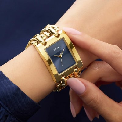This Guess watch has a case made of stainless steel with a diameter of 28 mm and is fitted with a metal band. Inside the case lies a Seiko movement and the watch features a Mineral crystal.