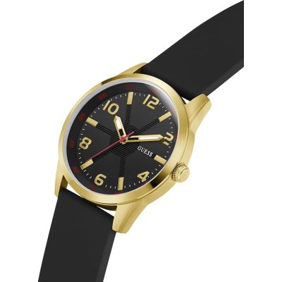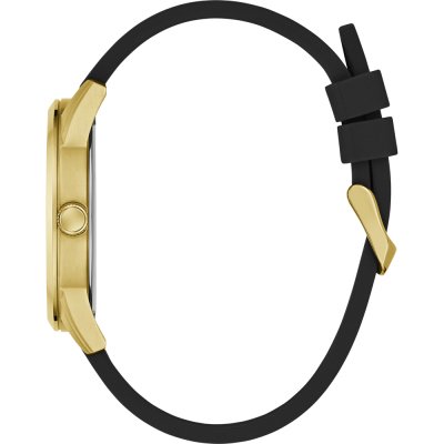 This Guess watch has a case made of stainless steel with a diameter of 42 mm and is fitted with a rubber band. Inside the case lies a Seiko movement and the watch features a Mineral crystal.