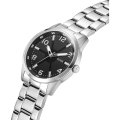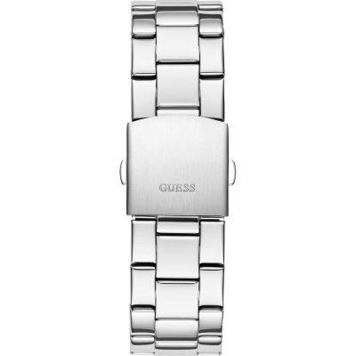 This Guess watch has a case made of stainless steel with a diameter of 42 mm and is fitted with a stainless steel band. Inside the case lies a Seiko movement and the watch features a Mineral crystal.