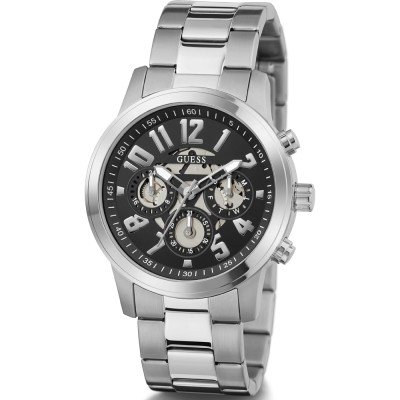 This Guess watch has a case made of stainless steel with a diameter of 44 mm and is fitted with a stainless steel band. Inside the case lies a Seiko Instruments Inc. movement and the watch features a Mineral crystal.
