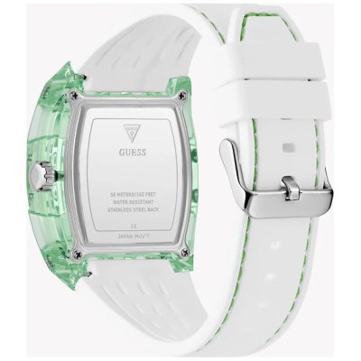 This Guess watch has a case made of Resin with a diameter of 43 mm and is fitted with a rubber band.
