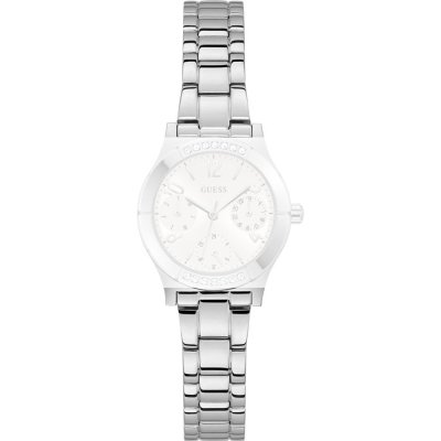 This Guess watch strap is made of metal and is attached to the watch by means of pushpins. The band has a width of 14 mm and is closed by means of a deployment clasp with safety. The strap has no straight mount which means that this strap is only suitable for the watches listed below.