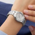 This Guess watch has a case made of stainless steel with a diameter of 25 mm and is fitted with a stainless steel band. Inside the case lies a Seiko movement and the watch features a Mineral crystal.