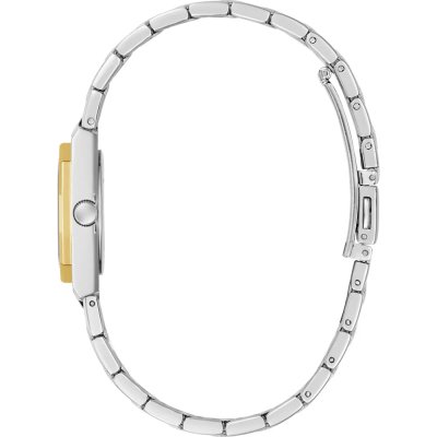 This Guess watch has a case made of stainless steel with a diameter of 25 mm and is fitted with a stainless steel band.