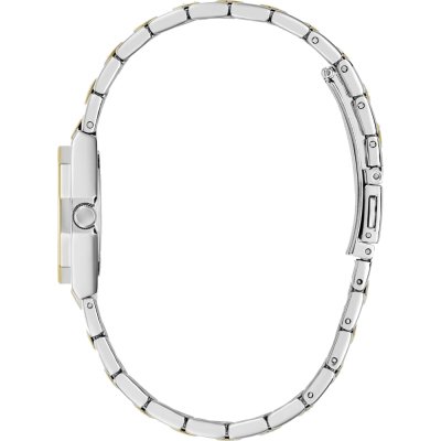 This Guess watch has a case made of stainless steel with a diameter of 25 mm and is fitted with a stainless steel band. Inside the case lies a Seiko movement and the watch features a Mineral crystal.