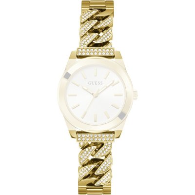 This Guess watch strap is made of metal and is attached to the watch by means of pushpins. The band has a width of 16 mm and is closed by means of a deployment clasp with push buttons. The strap has no straight mount which means that this strap is only suitable for the watches listed below.
