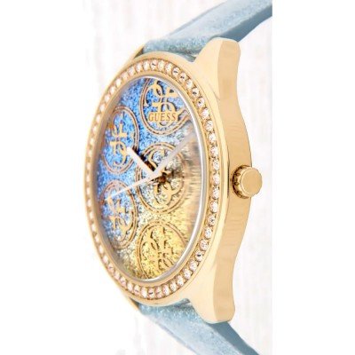 This Guess watch has a case made of stainless steel with a diameter of 44.5 mm and is fitted with a leather band. Inside the case lies a Seiko movement and the watch features a Mineral crystal.