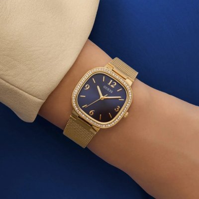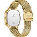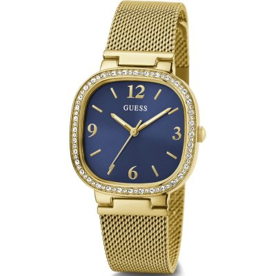 This Guess watch has a case made of stainless steel with a diameter of 32 mm and is fitted with a stainless steel band. Inside the case lies a Seiko movement and the watch features a Mineral crystal.
