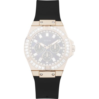 This Guess watch strap is made of silicone and is attached to the watch by means of pushpins. The band has a width of 24 mm and is closed by means of a buckle. The strap has no straight mount which means that this strap is only suitable for the watches listed below.