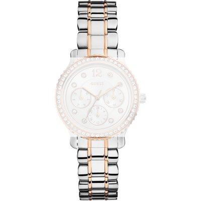 This Guess watch strap is made of stainless steel and is attached to the watch by means of pushpins. The band has a width of 16 mm and is closed by means of a deployment clasp with push buttons. The strap has no straight mount which means that this strap is only suitable for the watches listed below.