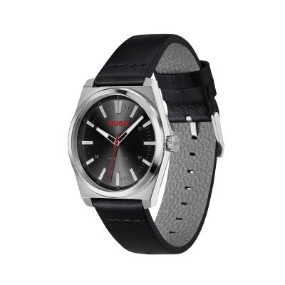 This Hugo Boss watch has a case made of stainless steel with a diameter of 40 mm and is fitted with a leather band. Inside the case lies a Seiko movement and the watch features a Mineral crystal.