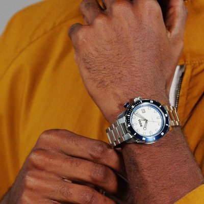 This Hugo Boss watch has a case made of stainless steel with a diameter of 42 mm and is fitted with a stainless steel band. Inside the case lies a Seiko Instruments Inc. movement and the watch features a Mineral crystal.