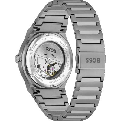This Hugo Boss watch has a case made of stainless steel with a diameter of 41 mm and is fitted with a stainless steel band. Inside the case lies a Miyota movement and the watch features a Mineral crystal.
