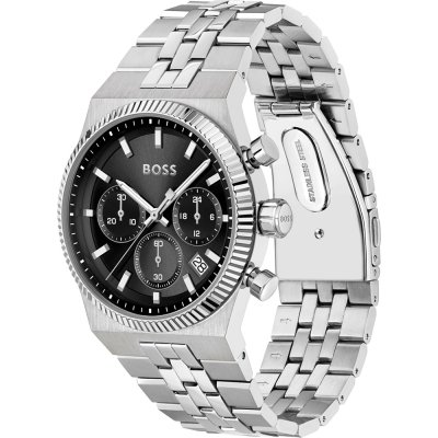 This Hugo Boss watch has a case made of stainless steel with a diameter of 41 mm and is fitted with a stainless steel band. Inside the case lies a Seiko Instruments Inc. movement and the watch features a Mineral crystal.