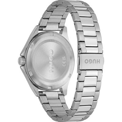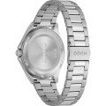 This Hugo Boss watch has a case made of stainless steel with a diameter of 42 mm and is fitted with a stainless steel band. Inside the case lies a Miyota movement and the watch features a Mineral crystal.