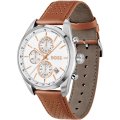 This Hugo Boss watch has a case made of stainless steel with a diameter of 44 mm and is fitted with a leather band. Inside the case lies a Seiko Instruments Inc. movement and the watch features a Mineral crystal.