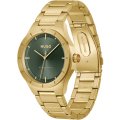 This Hugo Boss watch has a case made of stainless steel with a diameter of 42 mm and is fitted with a stainless steel band. Inside the case lies a Seiko movement and the watch features a Mineral crystal.