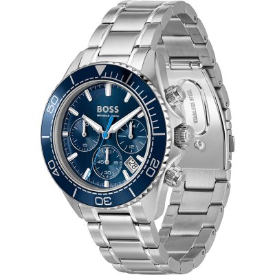This Hugo Boss watch has a case made of stainless steel with a diameter of 44 mm and is fitted with a stainless steel band. Inside the case lies a Seiko Instruments Inc. movement and the watch features a Mineral crystal.