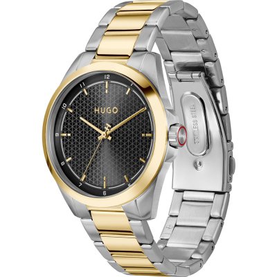 This Hugo Boss watch has a case made of stainless steel with a diameter of 41 mm and is fitted with a stainless steel band. Inside the case lies a Seiko movement and the watch features a Mineral crystal.