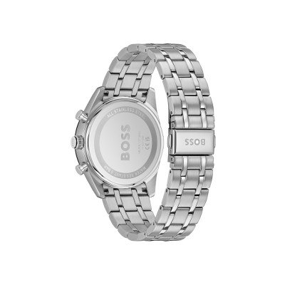 This Hugo Boss watch has a case made of stainless steel with a diameter of 41 mm and is fitted with a stainless steel band. Inside the case lies a Seiko Instruments Inc. movement and the watch features a Mineral crystal.