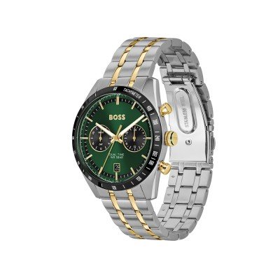 This Hugo Boss watch has a case made of stainless steel with a diameter of 41 mm and is fitted with a stainless steel band. Inside the case lies a Seiko Instruments Inc. movement and the watch features a Mineral crystal.