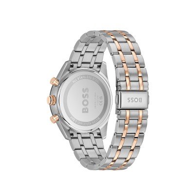 This Hugo Boss watch has a case made of stainless steel with a diameter of 41 mm and is fitted with a stainless steel band. Inside the case lies a Seiko Instruments Inc. movement and the watch features a Mineral crystal.