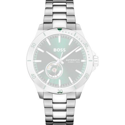 This Hugo Boss watch strap is made of stainless steel and is attached to the watch by means of pushpins. The band has a width of 21 mm and is closed by means of a deployment clasp with push buttons. The strap has no straight mount which means that this strap is only suitable for the watches listed below.