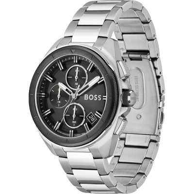 This Hugo Boss watch has a case made of stainless steel with a diameter of 44 mm and is fitted with a stainless steel band. Inside the case lies a Seiko Instruments Inc. movement and the watch features a Mineral crystal.