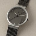 This Jacob Jensen watch has a case made of stainless steel with a diameter of 35 mm and is fitted with a stainless steel band. Inside the case lies a Ronda movement and the watch features a Mineral crystal.