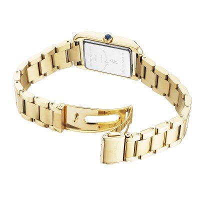 This Jacques du Manoir watch has a case made of stainless steel with a diameter of 23 mm and is fitted with a stainless steel band. Inside the case lies a Ronda movement and the watch features a Mineral crystal.